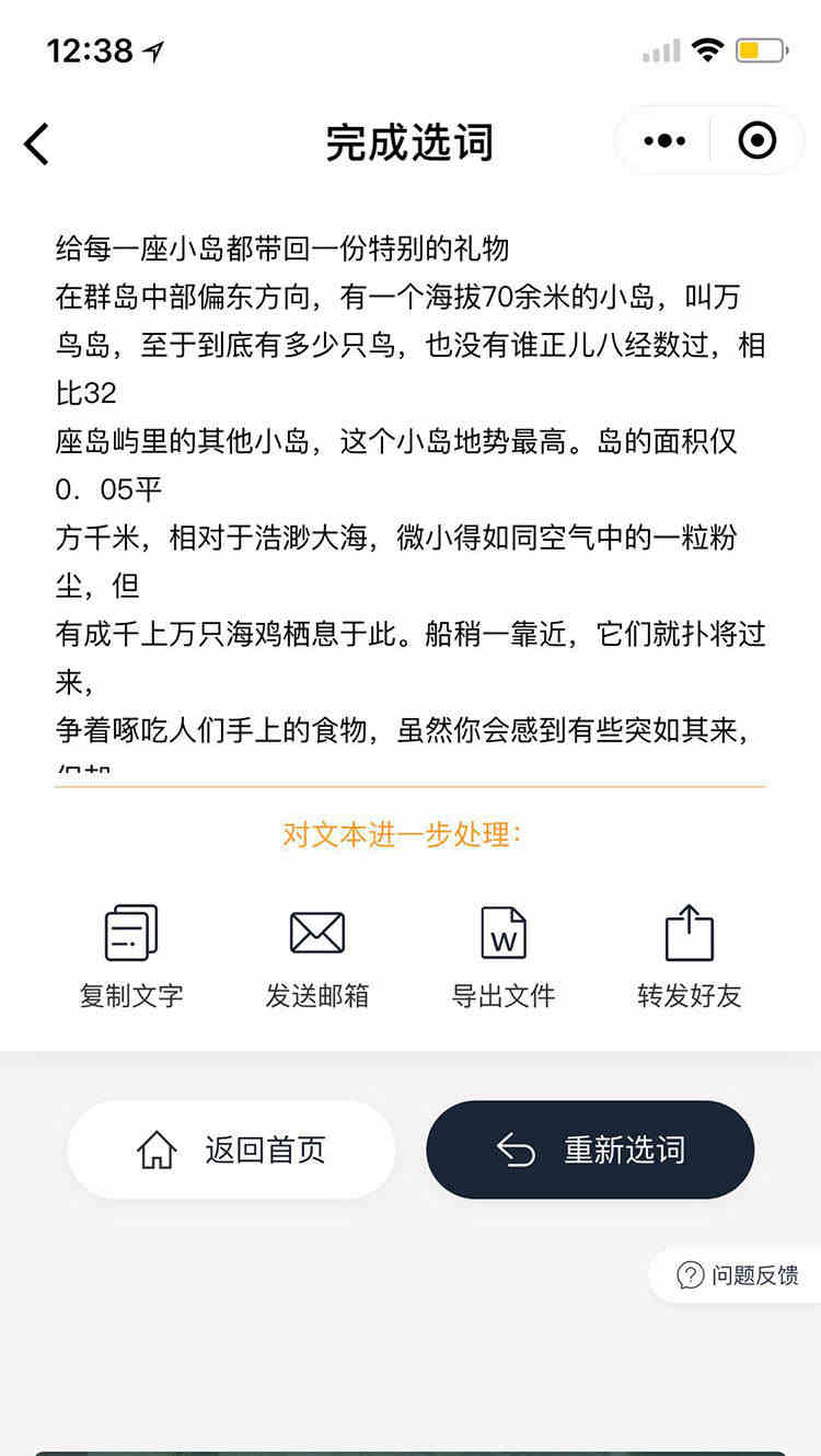 文字复制可以让你快捷的复制结果文字,轻松粘贴到任意位置,并支持邮箱发送,便捷的创建结果文档,并发送至我的邮箱